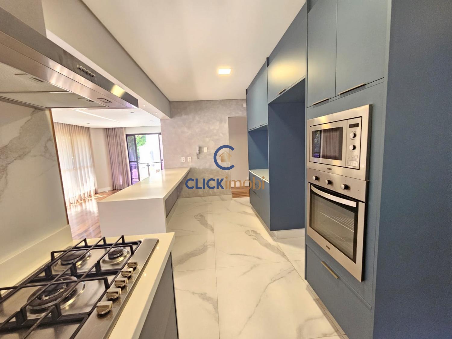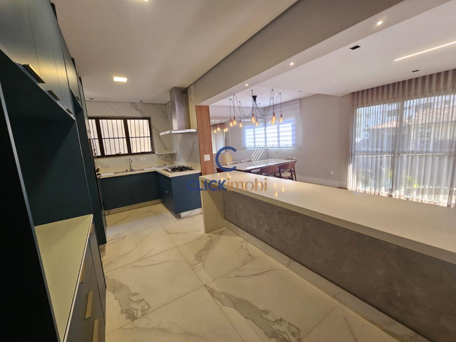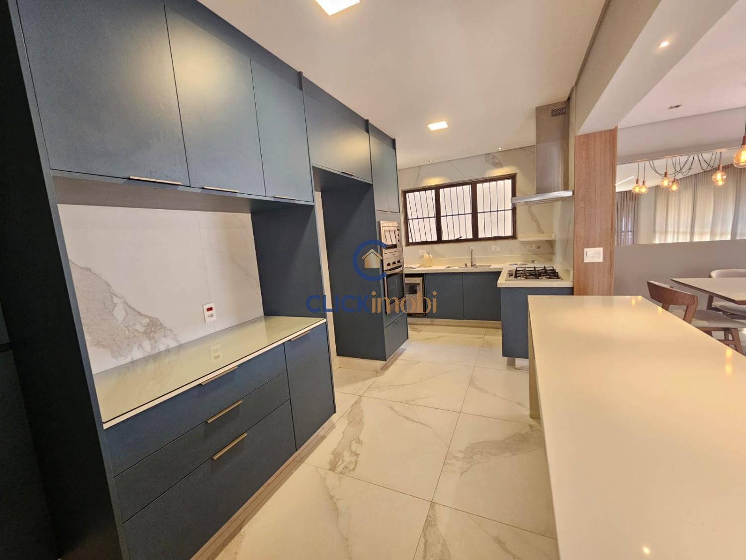 Imóvel moderno e bem distribuído, com 3 suítes, 5 banheiros, sala de estar, jantar, lavabo e cozinha funcional.