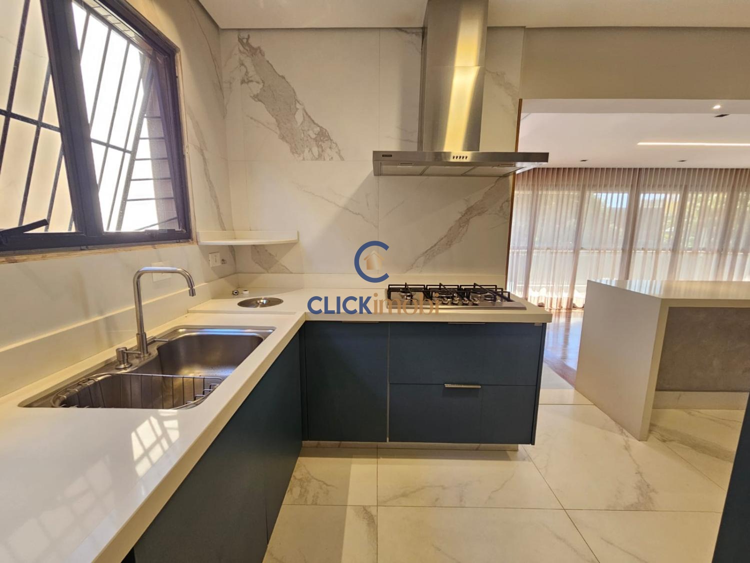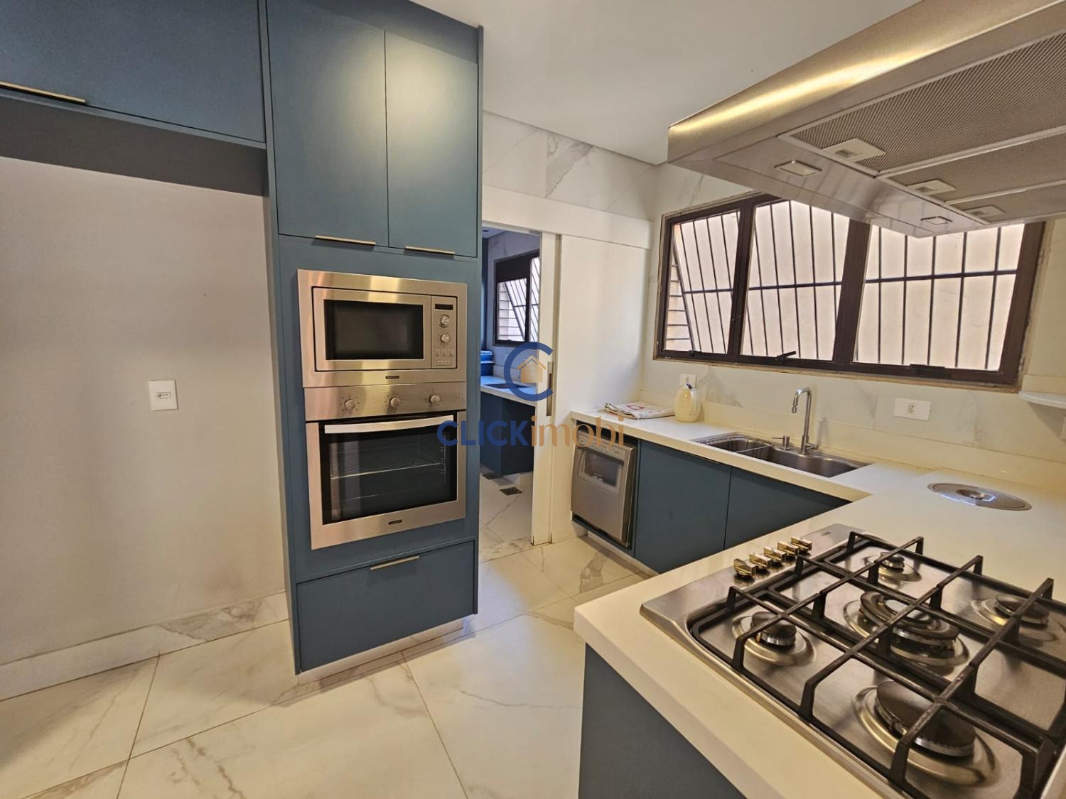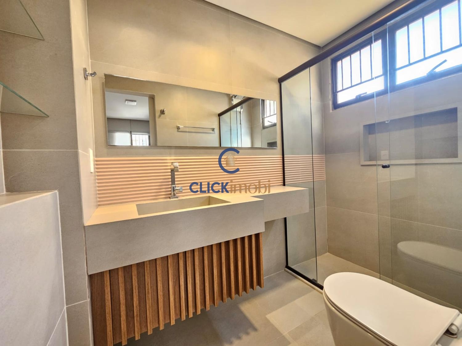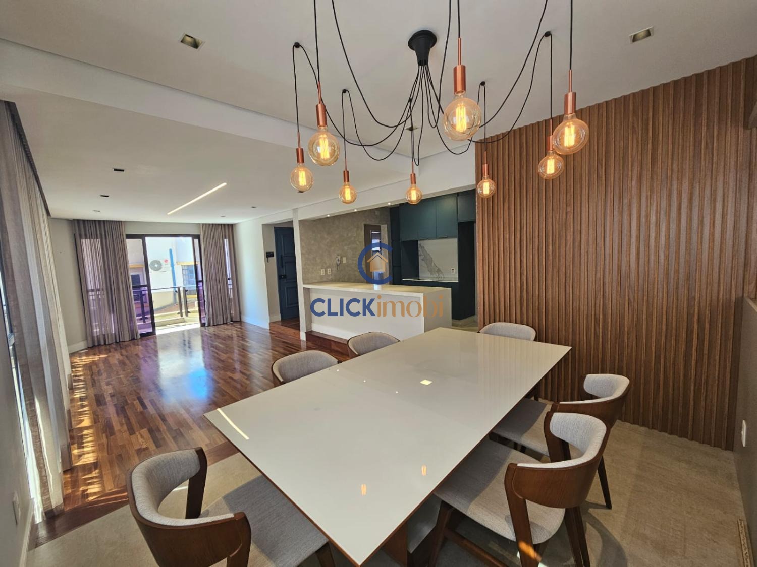 Imóvel moderno e bem distribuído, com 3 suítes, 5 banheiros, sala de estar, jantar, lavabo e cozinha funcional.