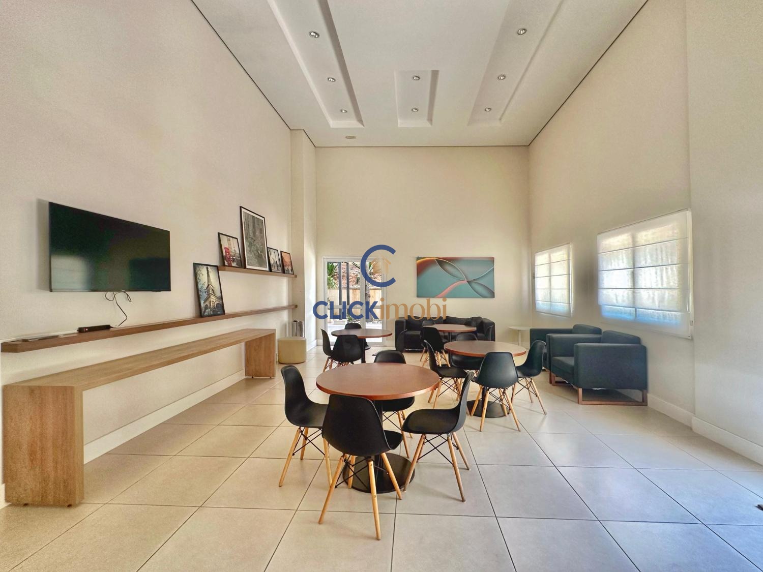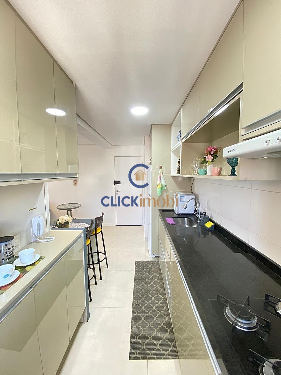 Sala ampla , integrada com cozinha americana , rica em planejados.