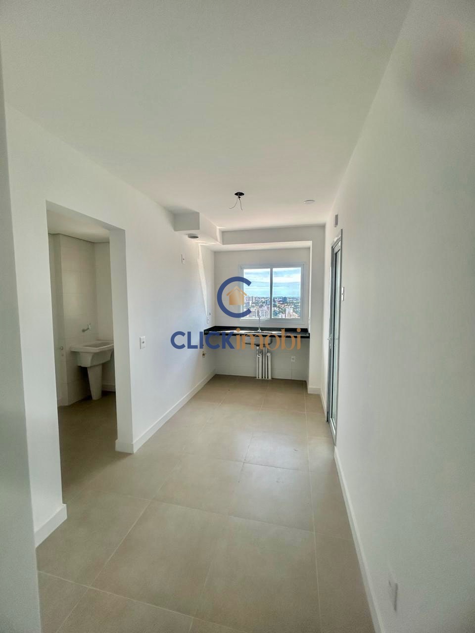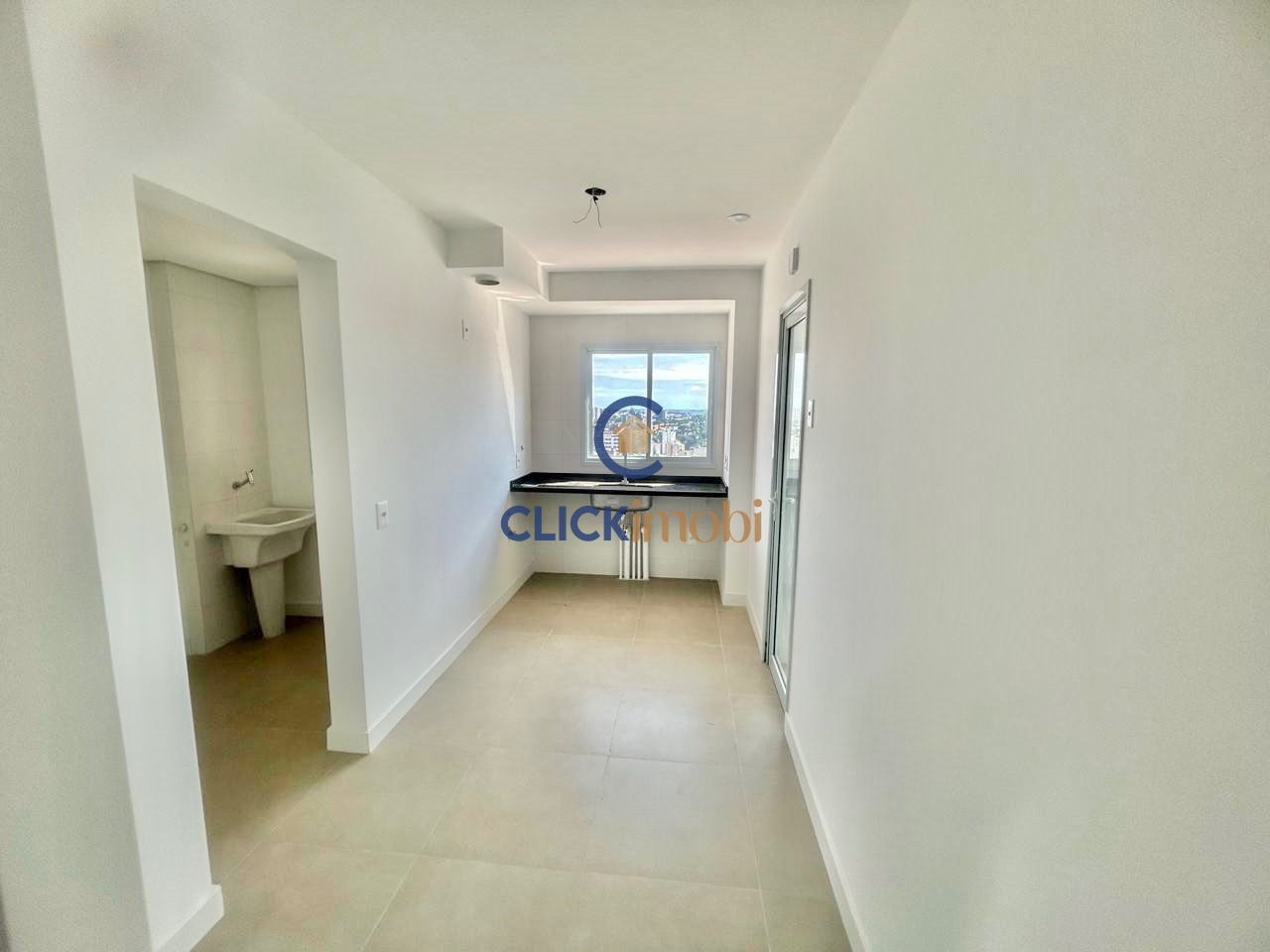 Apartamento com sala ampla, sacada gourmet , lavabo e cozinha com área de serviço.
