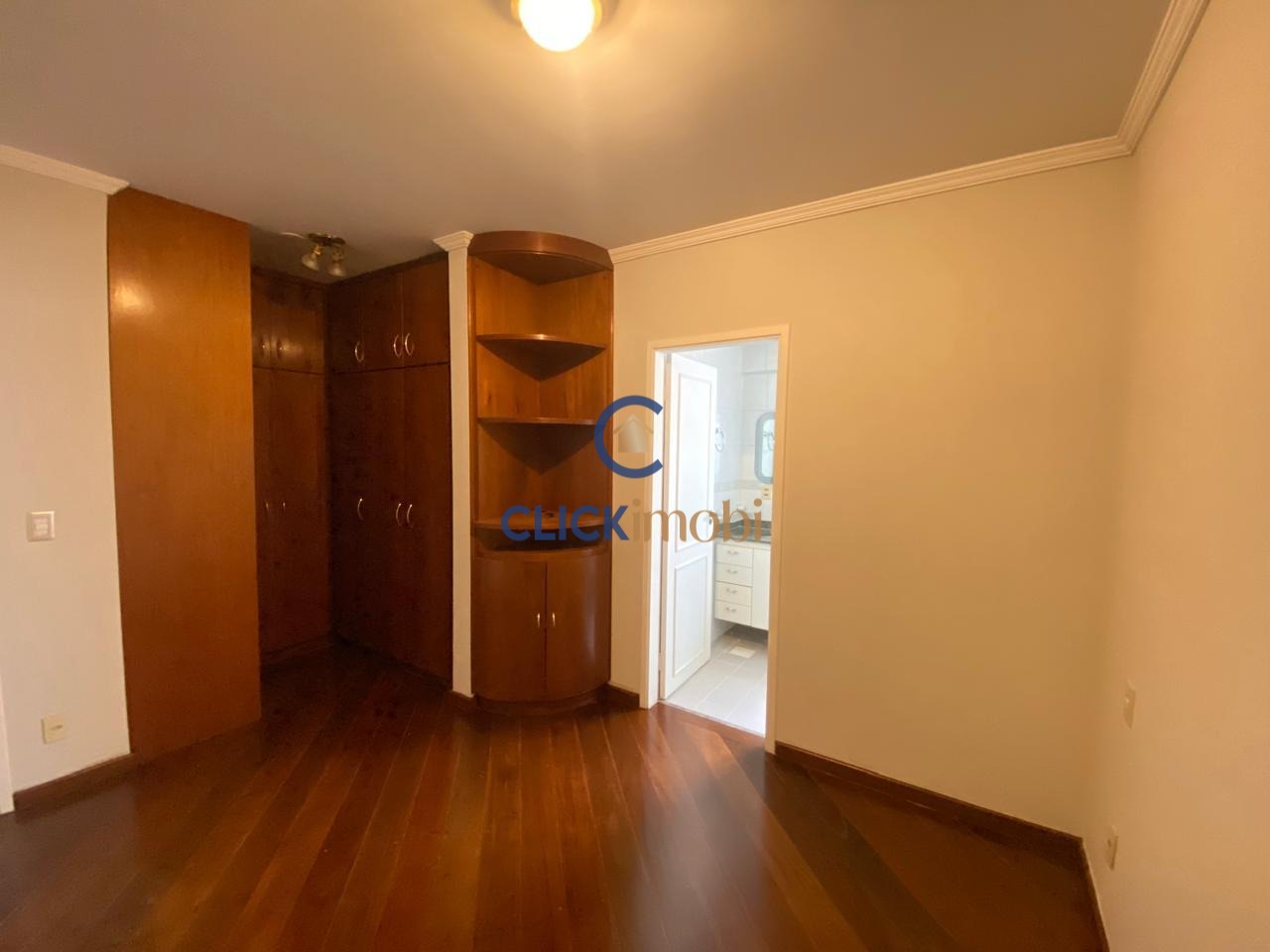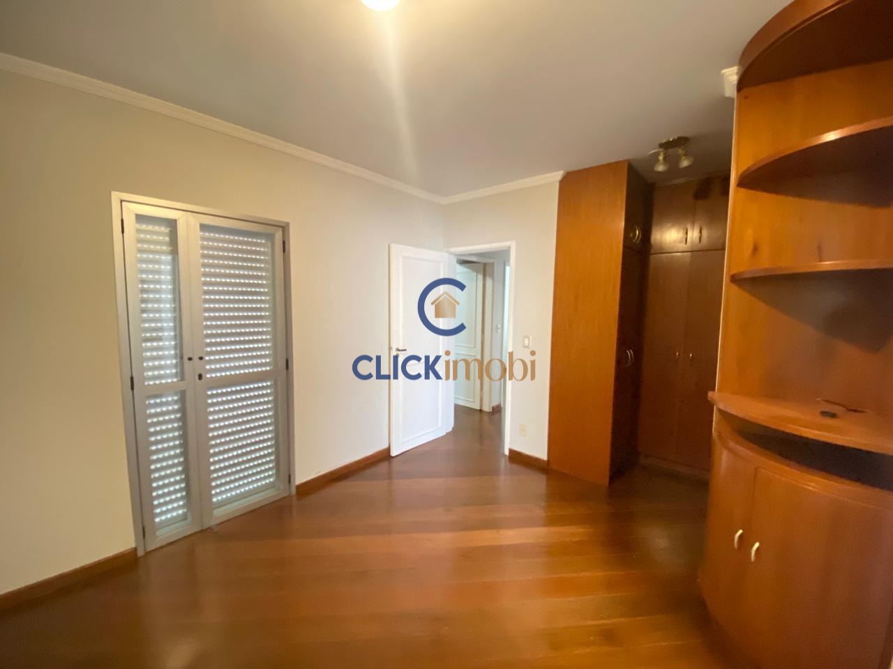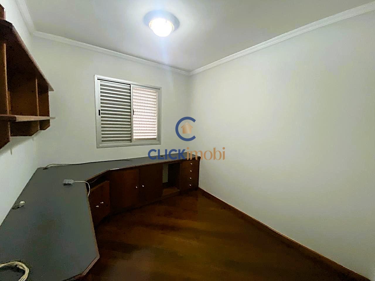 O imóvel conta com 3 dormitórios (1 suíte com closet e sacada), sendo um deles atualmente utilizado como escritório com móveis planejados em madeira maciça.