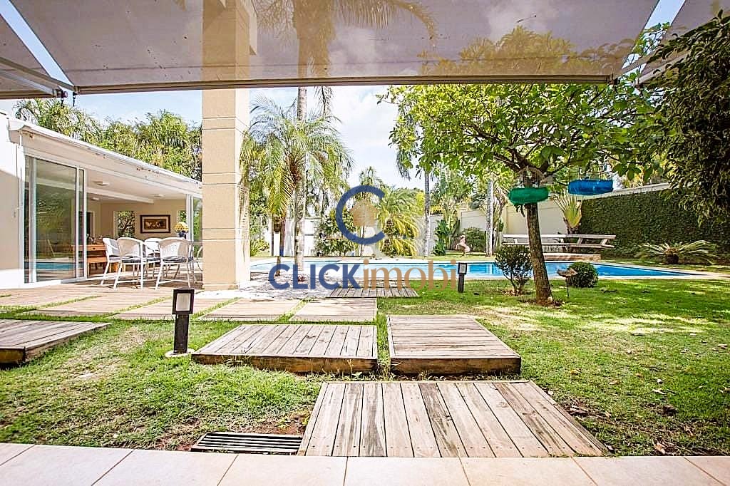 O destaque fica para o espaço gourmet com fogão e forno à lenha, integrado ao jardim com palmeiras imperiais e piscina, criando um verdadeiro oásis para momentos de lazer e convivência.