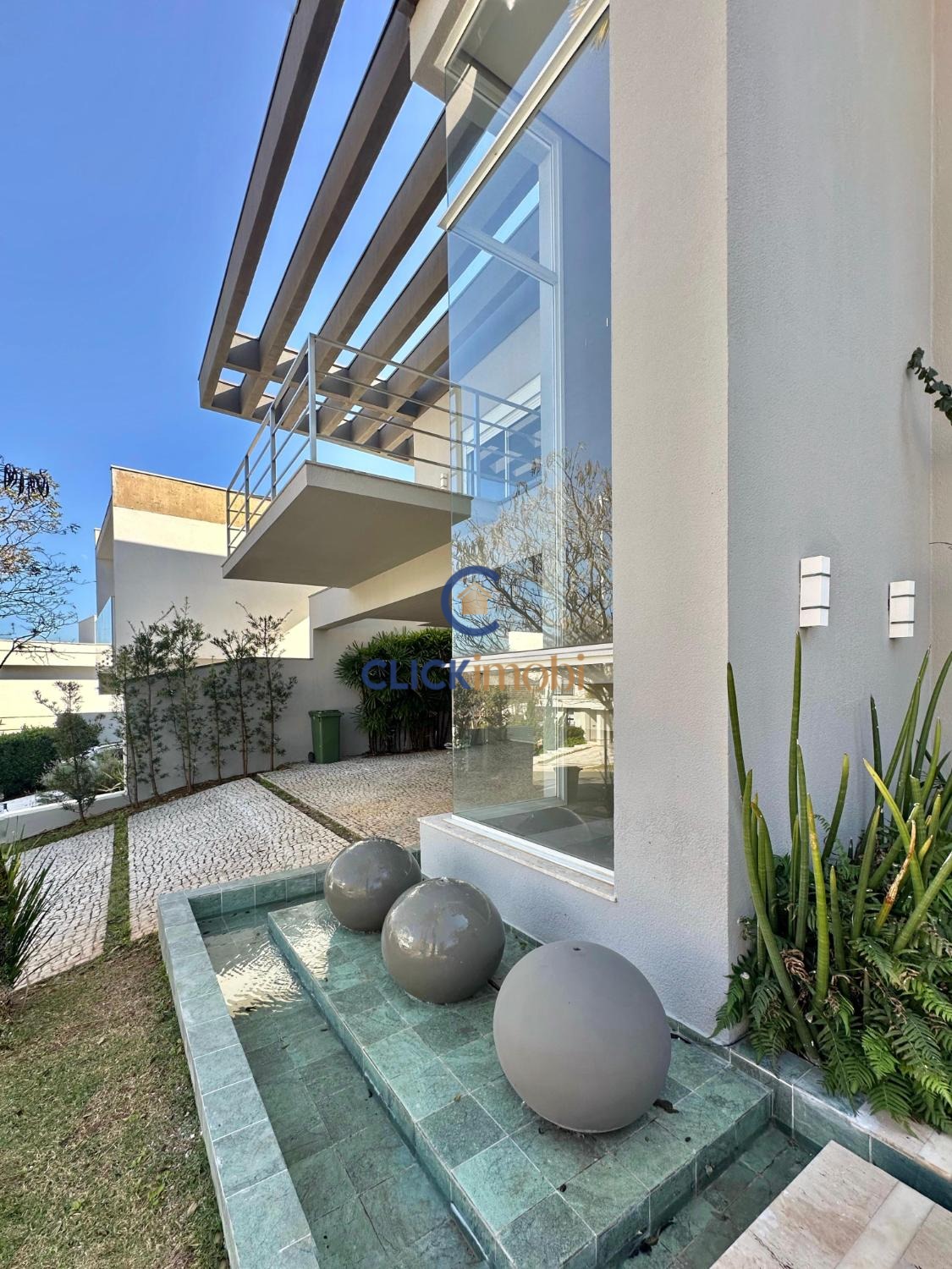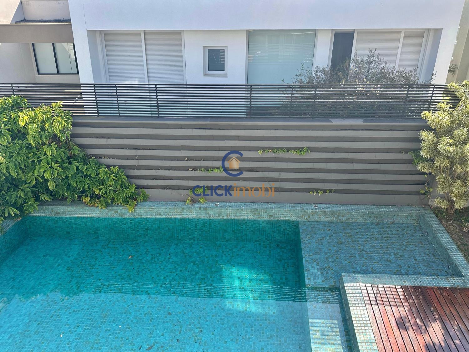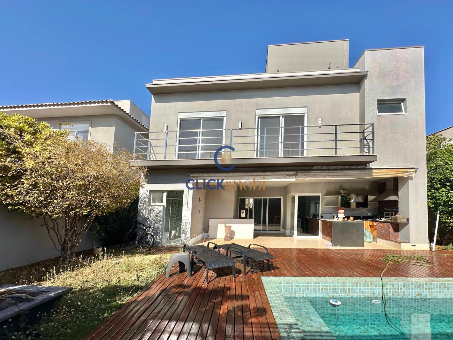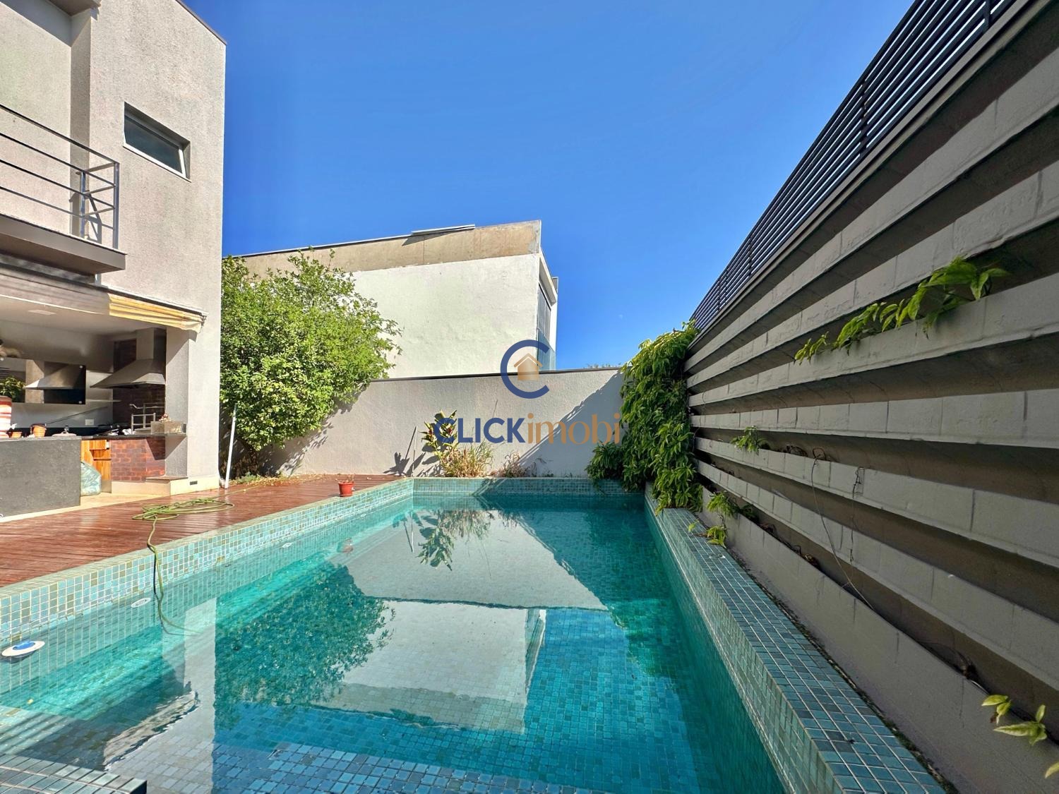 Linda piscina e paisagismo formado.