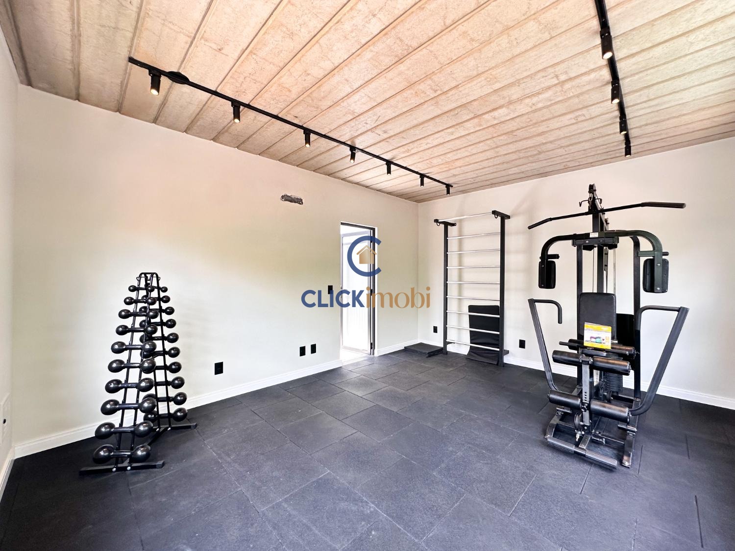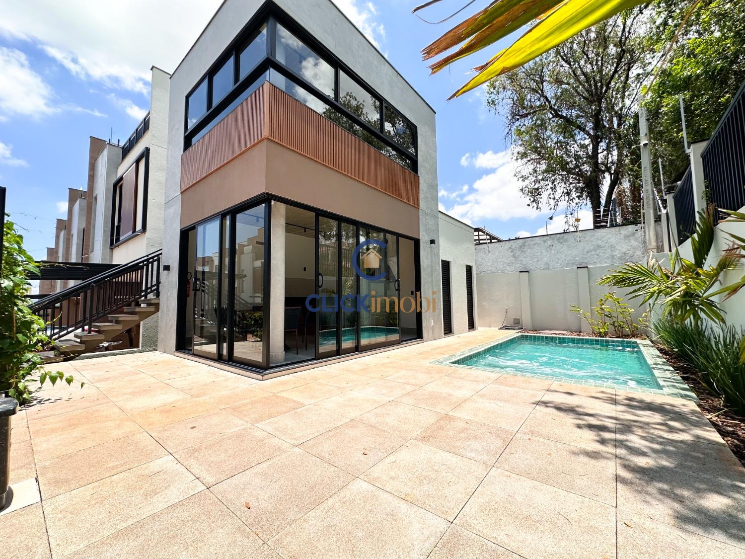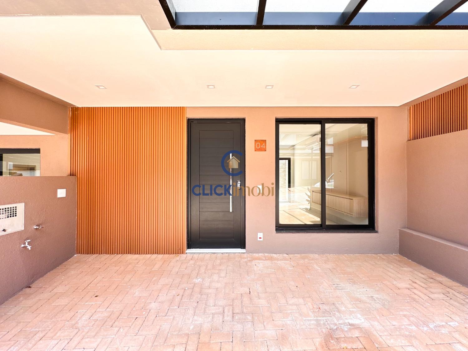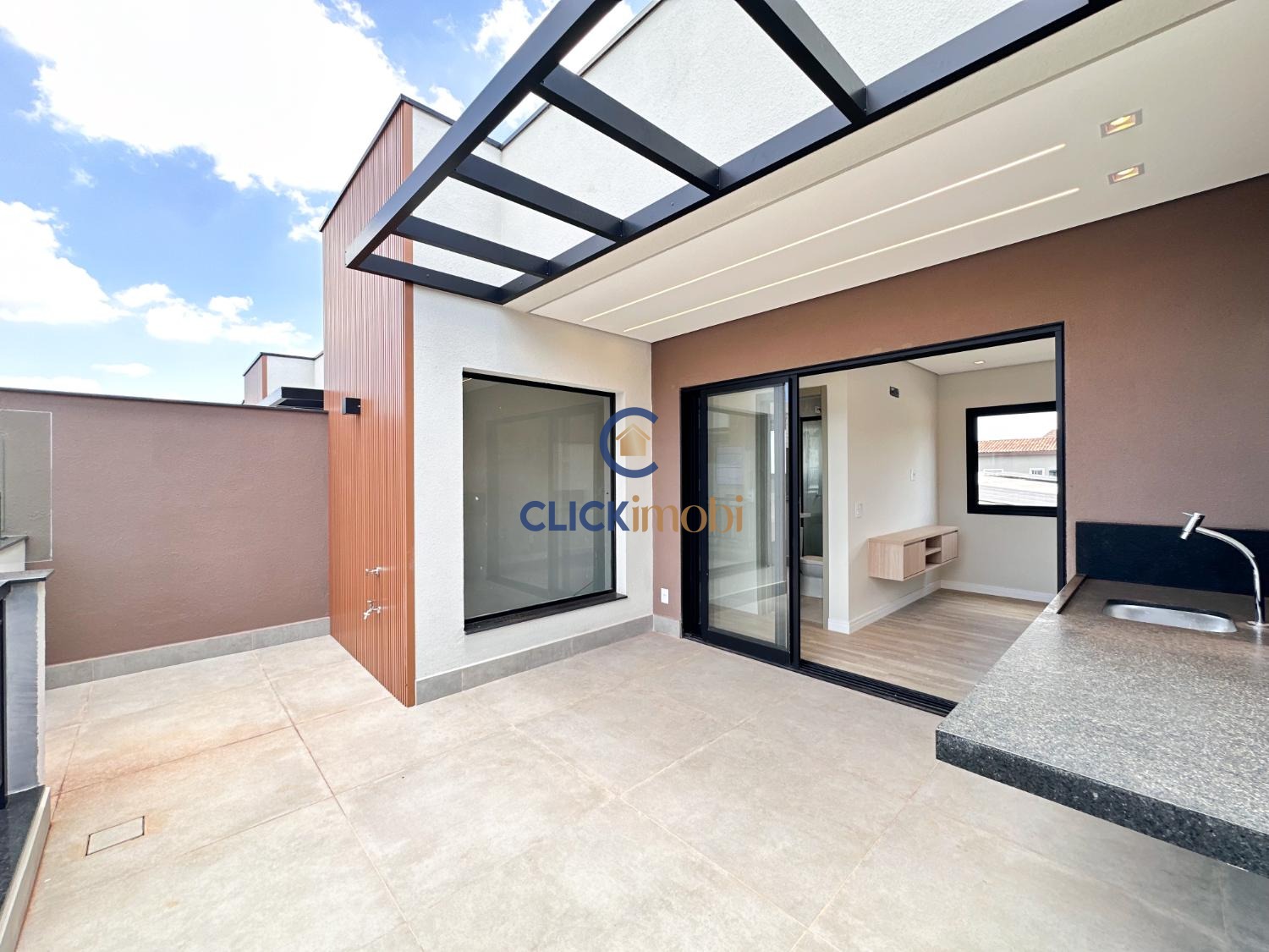 Sala ampla, cozinha e quintal no piso térreo.