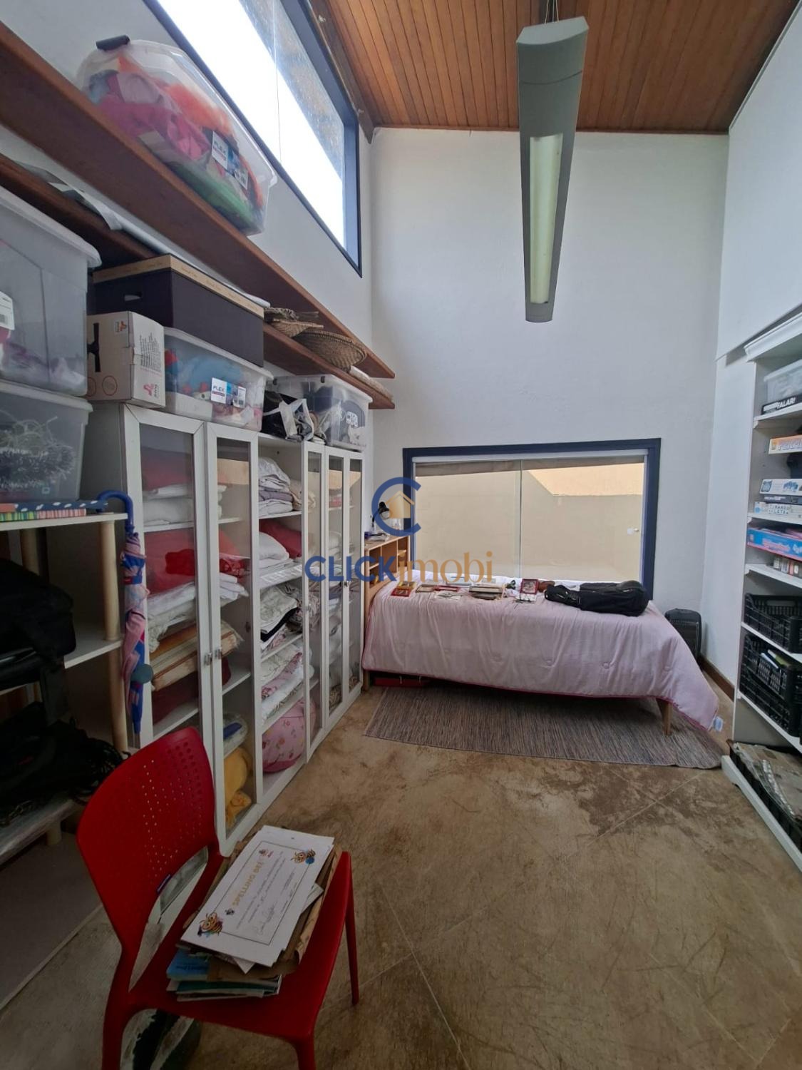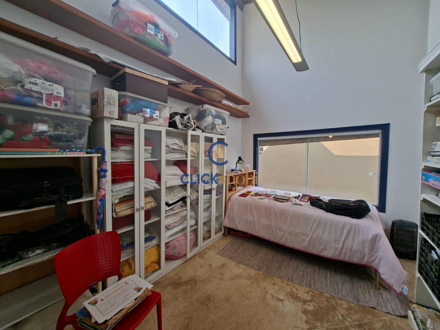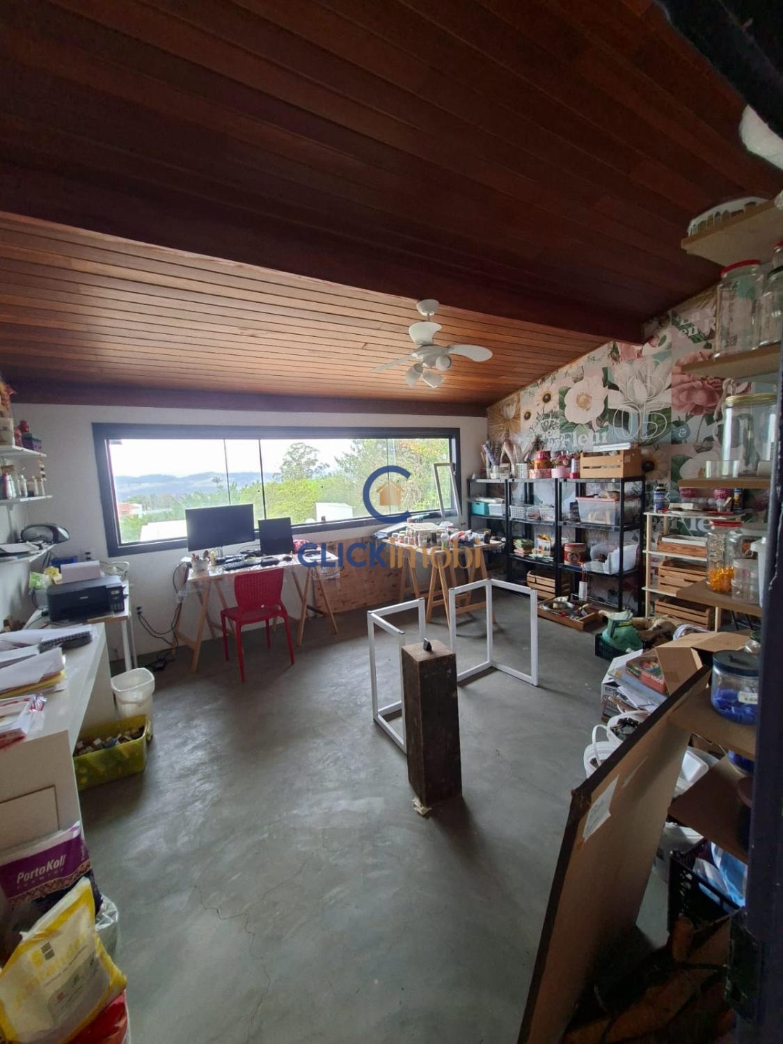 No andar superior foi aproveitado um espaço excelente e adaptado para um atêliê.