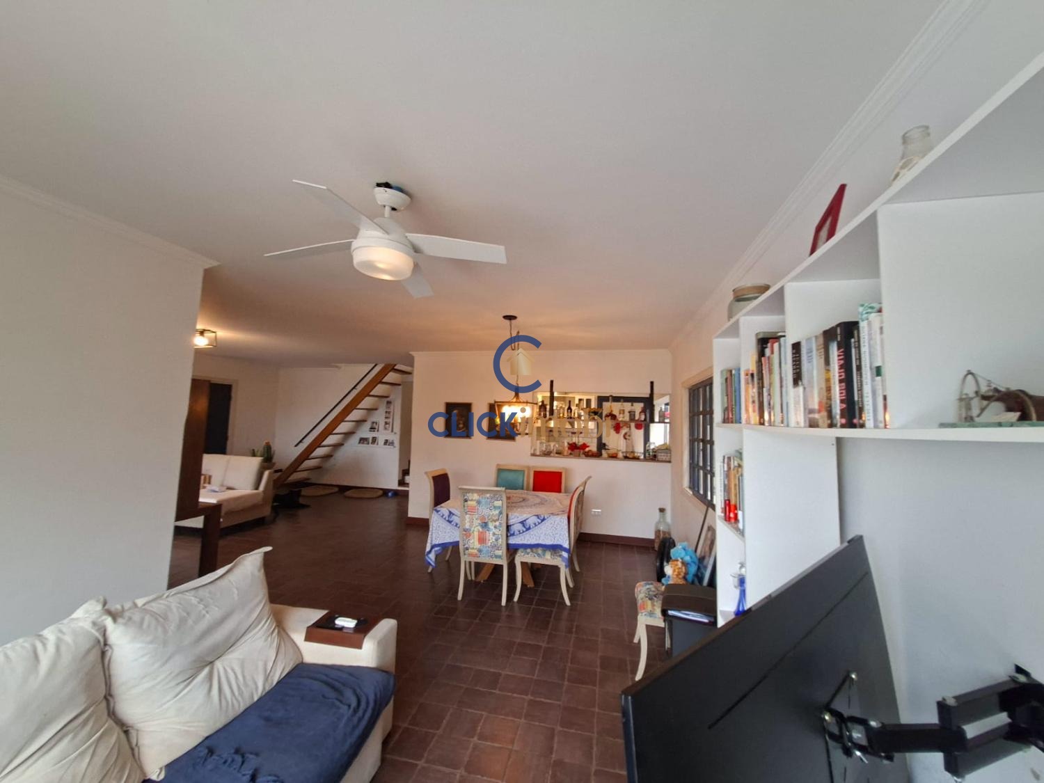 Living amplo, para 3 ambientes, sendo sala de jantar e estar e tv conjugadas.