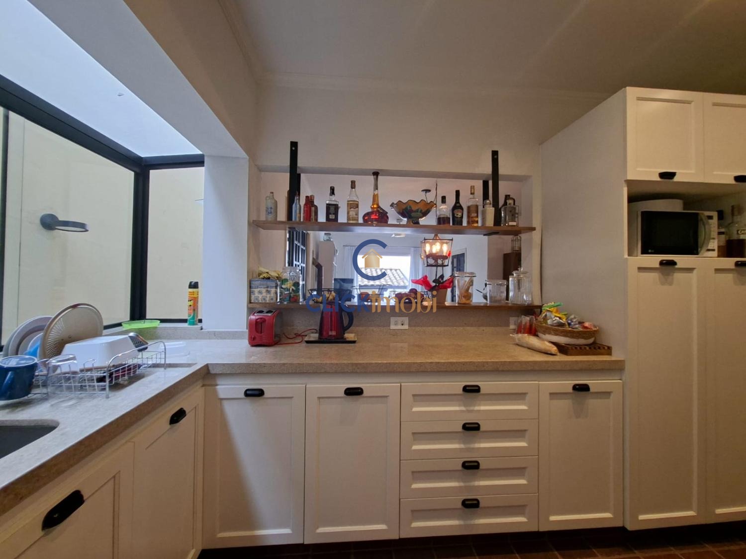 Amplas portas balcão, que abrem para uma agradável varanda. Passa prato que integra a cozinha.