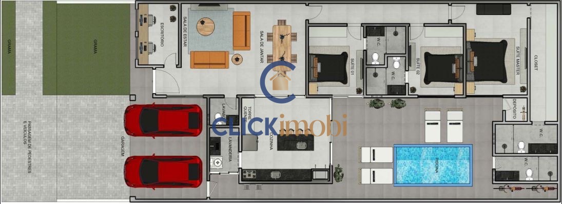 Esta moderna e espaçosa casa oferece um equilíbrio perfeito entre luxo e conforto, com 3 suítes cuidadosamente projetadas, cada uma com seu próprio banheiro privativo, proporcionando um ambiente íntimo e aconchegante para os moradores e convidados.