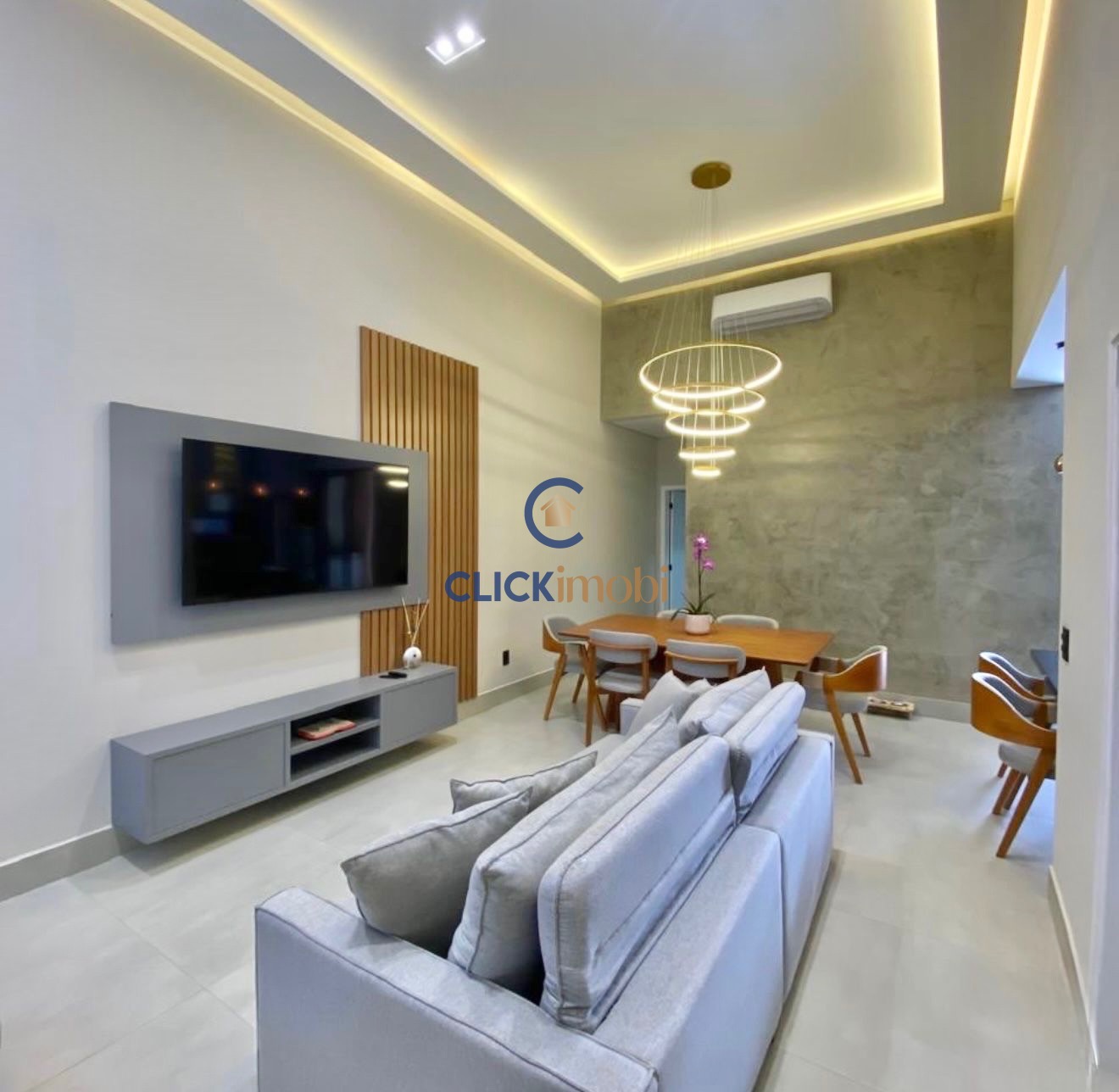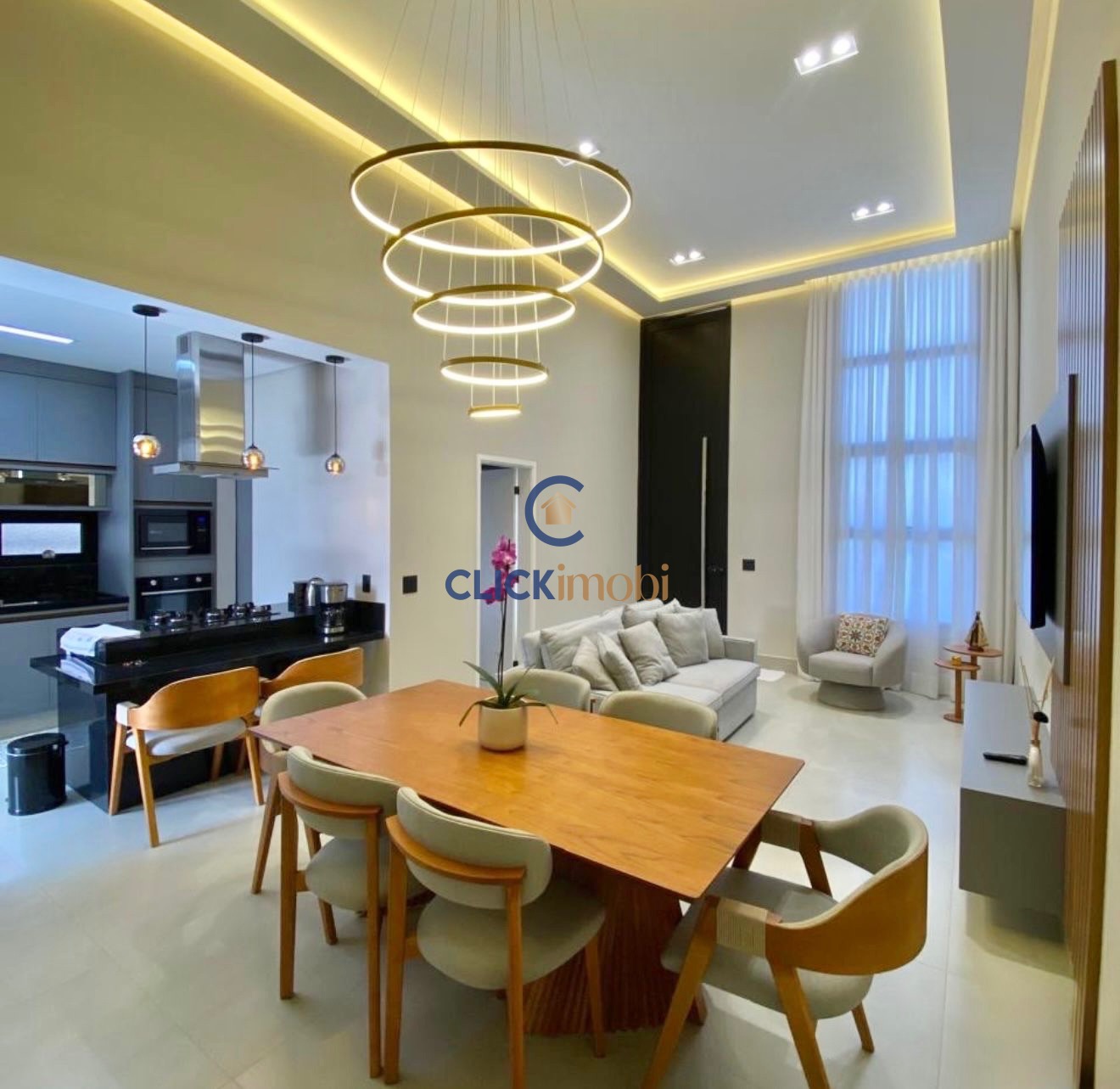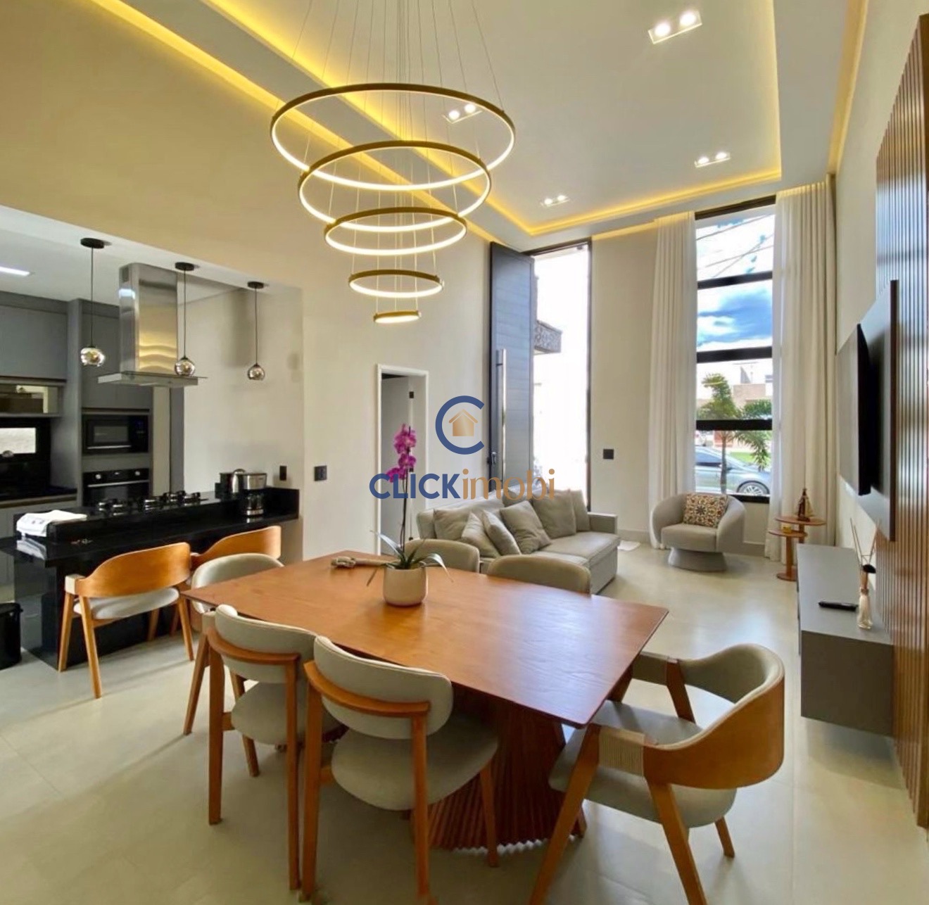 A casa possui 3 dormitórios, sendo 1 suíte master com closet, além de sala de estar e jantar integradas, criando um espaço amplo e aconchegante. A cozinha com ilha já conta com cooktop, micro-ondas e coifa, trazendo funcionalidade e sofisticação ao ambiente.