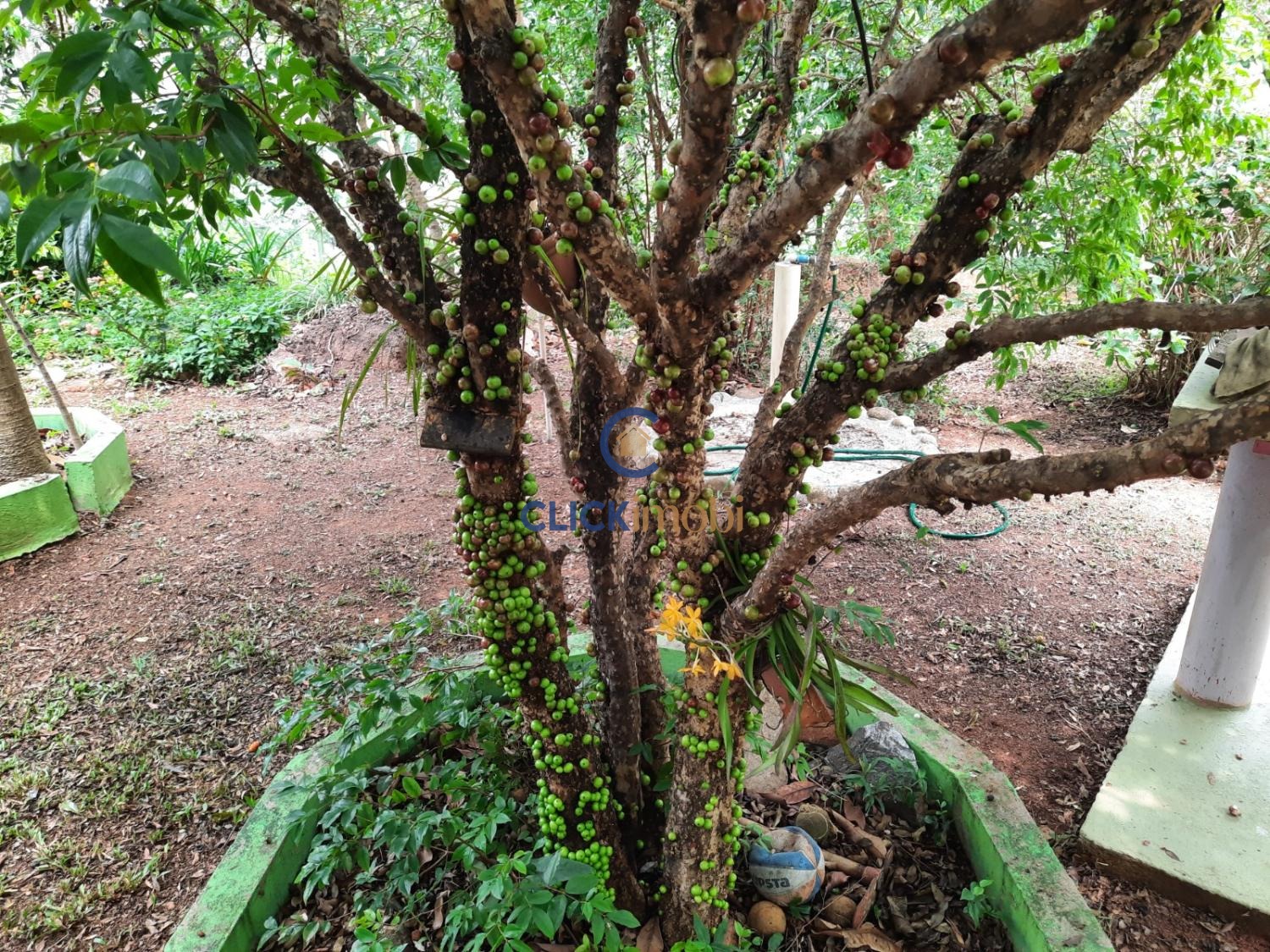 Pomar com 40 pés de frutas produzindo: jabuticabas, lixias, figos, uvaias, acerolas, pitanga, sapoti, nóz pecan, tamarindo, cambuci, gabiroba, goiabeira, manga, limões….e outras.